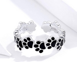Paw Print Black Enamel Ring - Sterling Silver